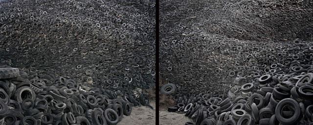 In this case in Spain, this pile of car tires was the key stone to articulate a project of panorama photos that linked piles of waste (scrapyards, landfills) with the real state bubble. You could see the building rising behind in the photo (this ones http://www.6000km.org/localizaciones/residencial-francisco-hernando-pau-el-quinon-y-autopista-de-peaje-radial-4/). Buildings constructed in this areas were mere speculative purposes were as waste a the landfills and could exist there because of the new highways and the car culture. A well connected ecosystem that make cities expand their boundaries hundreds of kilometers away. All of them are the consequences in the landscape and environment of the real estate bubble, what we called by then, “landscapes after the battle”.