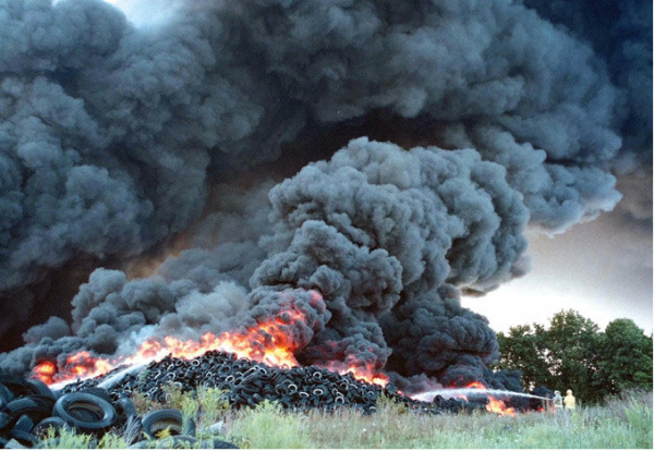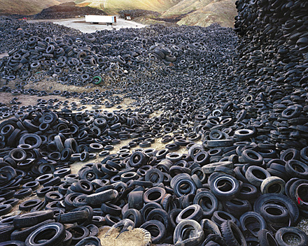 One of the most popular search phrases that leads people to the Discard Studies blog is “pile of tires.” Perhaps the terrible charisma of piles of tires is why people search for the term on Google with such regularity? Is it the smell, the orderly stacking as the tidier version of hoarding, the mystery of vulcanized rubber’s permanence, the blurring of lines between industrial and domestic waste, or the memories from the 1980s and 90s of burning tires in the face of ozone depletion and acid rain that makes piles of discard tires such an icon?