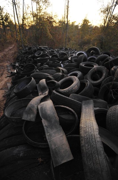 For those behind the Google searches, TreeHugger recently published a piece on a criminally massive pile of tires in rural South Carolina, where a man has accumulated 250,000 tires that occupy 50 acres of land.