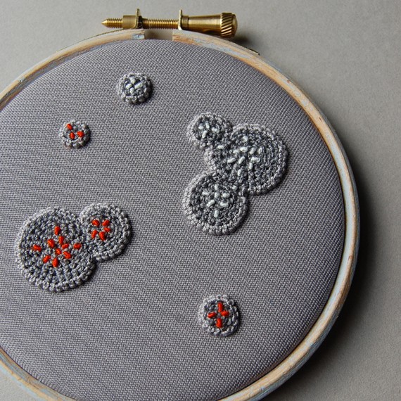 English textile artist Elinart sells her fabric pieces on Etsy. She makes jewelery, modifies handbags and wallets, and creates stand-alone and wall-hung pieces that are soft, textured, domestic and beautiful. Her descriptive tagline: “Crochet lichen and mould.” Images of her work are on Flickr.