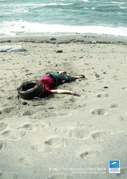 “Absurdity” derives from the Latin absurdusm meaning “out of tune.” The absurd is irrational, without reason, and is often contrasted with seriousness. The Surfrider Foundation uses absurdity in all seriousness, however, to make a sophisticated point about the bad reasoning that goes into ocean wastes. This includes bad reasoning in infrastructure, as when sewage systems dump directly into waterways, bad reasoning by litterers, and bad reasoning by industry and designers when they make disposables out of a permanent substance like plastic. If dirt, as Mary Douglas insists, is about “harassing one another into good citizenship,” then the tactics employed by the Surfrider Foundation can be described as a moral absurdity, where they “show” that individual, cultural and industrial practices can lead to an violently incongruous order that knocks the ocean “out of tune.”