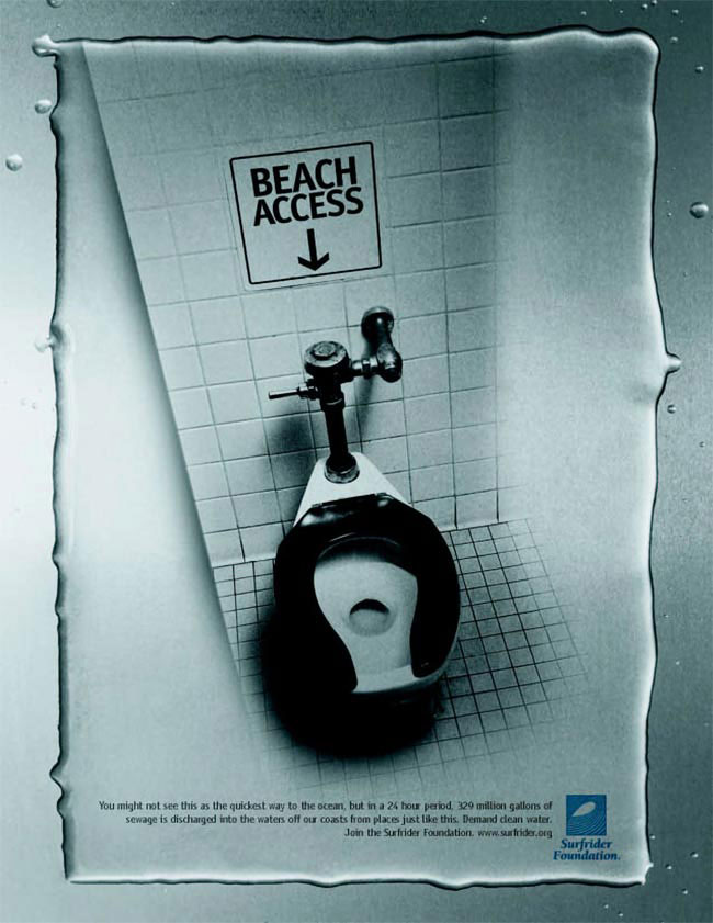You might not see this as the quickest way to the ocean, bit in a 24 hour period, 329 million gallons of sewage is discharged into the waters off our oceans form places just like this. Demand clean water. Join the Surfrider Foundation.