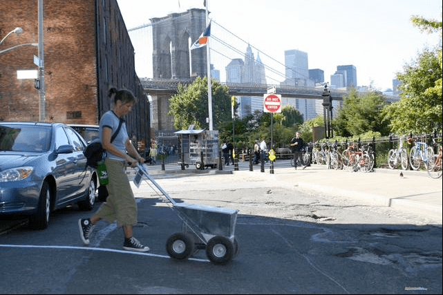 eve-mosher-1 Published 11/08/2013 at 641 × 427 in The visual culture of post-disaster high water marks ← Previous Next → Eve Mosher drawing the “High Water Line,” 2007.