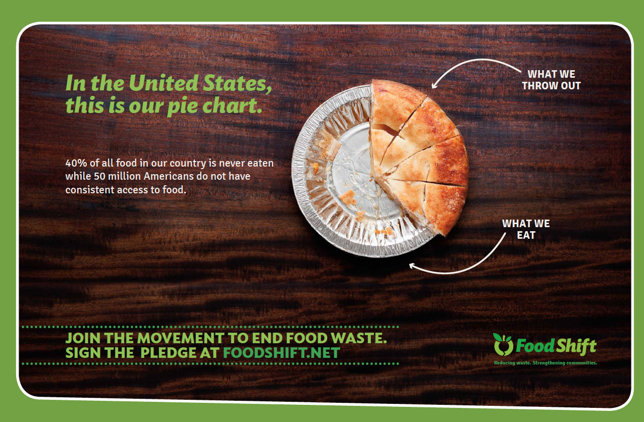 Are you aware that food is wasted in the United States? Are you aware that 40 percent of food is wasted in the United States? Chances are good that you are aware of the first issue: finishing what is on your plate has been a value in North America for generations. Given this long running morality of food waste in general, what does this poster and its statistic–which may well be new to you–do? How do awareness campaigns move towards change?