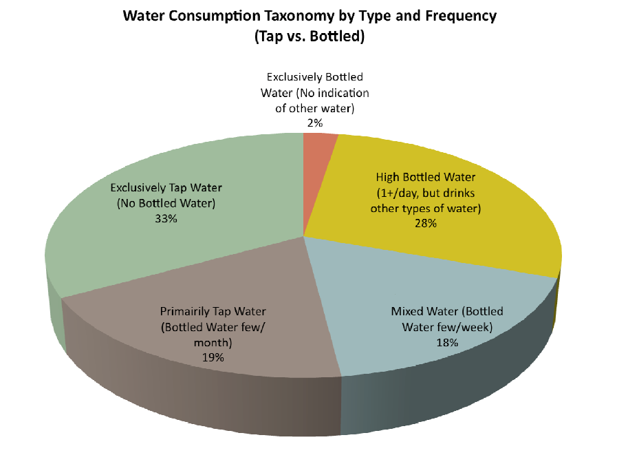 Through interviews, observation, and surveys, it turned out that almost all people at the university drank some tap water some of the time. Moreover, the top determining factor that lead to people who drank both tap and bottled water was not water quality, but access to bottled water. Some people did not have a water fountain or sink close to their offices or classrooms (and, it turned out, bathroom sinks do not count–almost no one would get drinking water from a bathroom); others had free bottled water in their office fridges, or via upright water coolers; others took bottled water from home and carried it around with them all day, sometimes refilling the plastic bottle with tap water when they needed it.