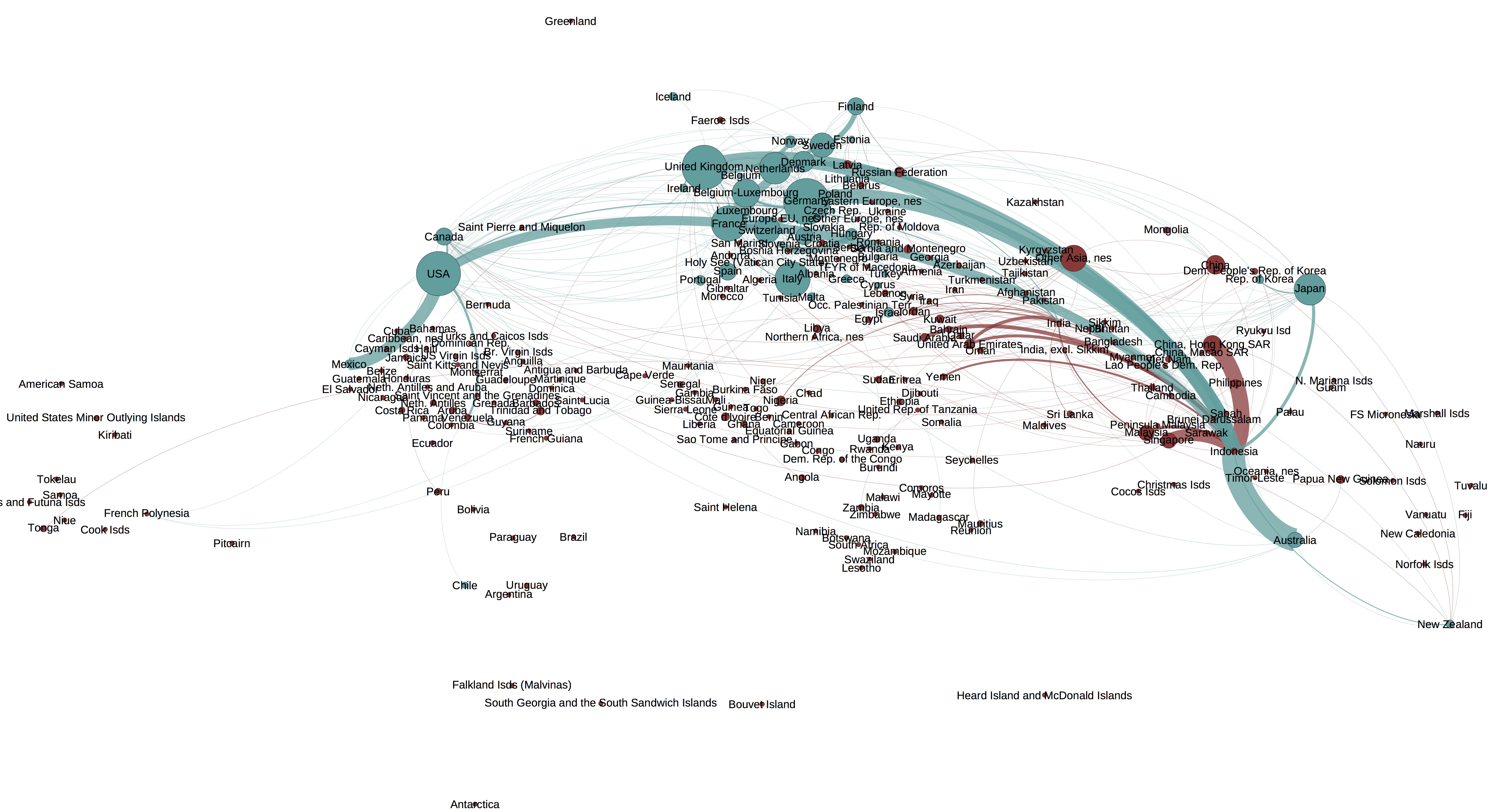 [Developed] territories are predominantly trading intra-regionally, with 73–82% of total trade moving between [developed] territories. In contrast, [developing] territories are mostly trading inter-regionally: by 2012 less than one-quarter of [developing] trade moved to other [developing] territories with the rest moving to [developed] territories.