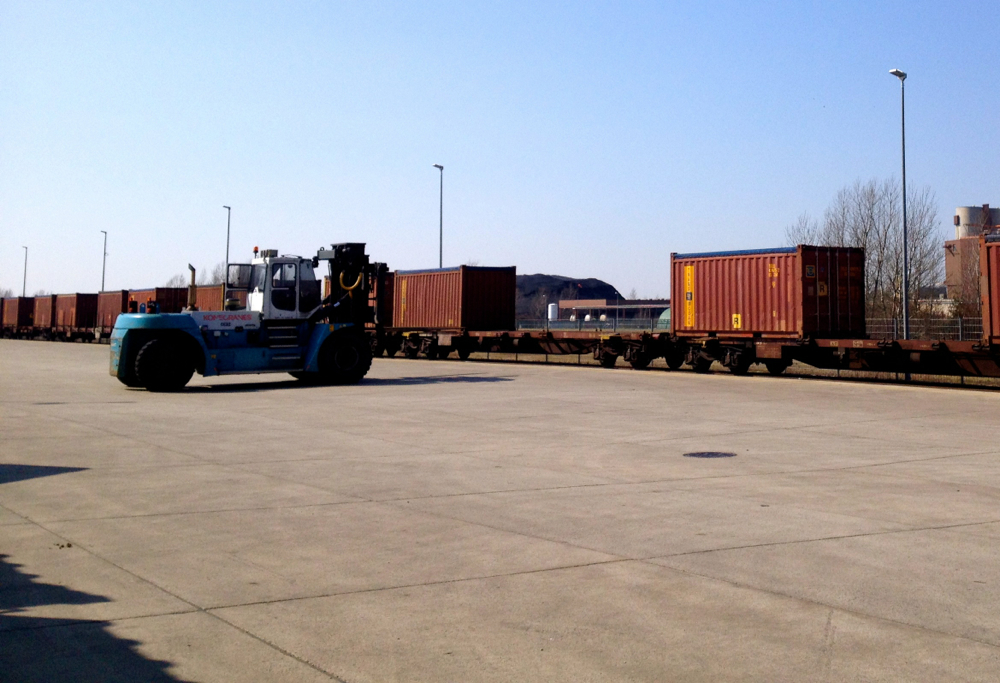One of the service vehicles used to unload the shipping containers from the rail lines. Author’s photo.