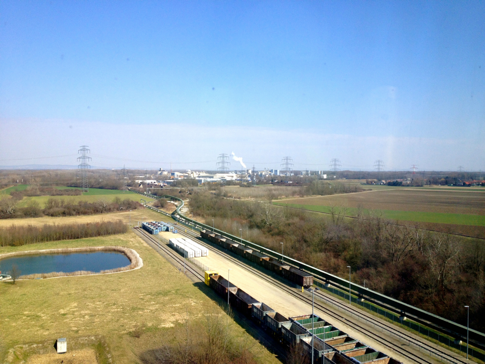 On perhaps the fourth floor we catch a view of the landscape surrounding the plant. We can see the rail tracks that run coal from the Danube to the power plant behind us. I remark on the view – how incredible I find it that from this point you see such a vast network of energy production, as well as the legacy of military infrastructure that, by many accounts, made the incinerator here possible. Waste delivery by rail, I’ve gleaned from many conversations, was something that the region was adamant about as it wouldn’t accept a facility that would also bring thousands of diesel-fueled trucks through the neighborhood.