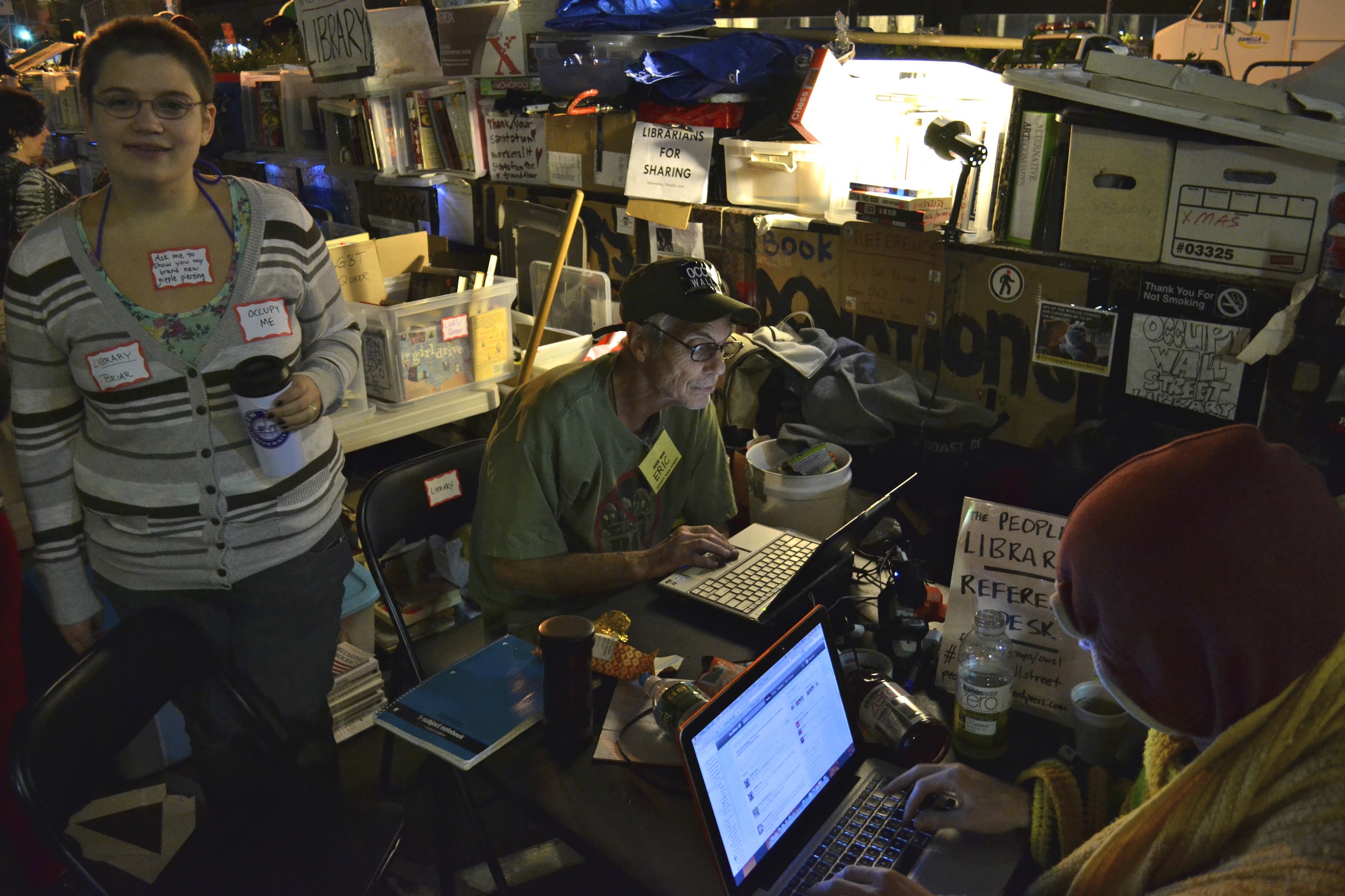 On November 15th 2011, under orders from then Mayor Michael Bloomberg, the New York Police Department (NYPD) dismantled and destroyed the People’s Library of Occupy Wall Street under the pretence of “cleaning” the park. Along with the kitchen, medical tent, residences of occupiers and more in Zucotti Park, all of the library’s books, zines, newspapers, media, computers, and other materials were thrown into trucks by sanitation workers and brought to a City of New York Department of Sanitation (DSNY) garage on 57th Street. Of the approximately 3,600 books seized that night, only 1,003 were recovered. Of that number, 201 were so damaged while in the possession of the City of New York that they were made unreadable. Thus, at least approximately 2,798 books were never returned or were damaged beyond repair.