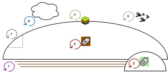 Life forms may operate on short-term temporal scales (like the volatile microbial populations), or on more seasonal ones (like the grass and birds), but the forces of nature they all rely on are slower, more recursive, and therefore difficult to observe directly. The hydrological cycle (see temporal cycle 6) is part of the regulation of landfills insofar as retention ponds, ditches and leachate tanks are often constructed to control the movement of water on and off site. But like the soils, the aquifers underground and the oxygenated atmosphere above it are not fixed but finite and in need of constant regeneration. Landfills interfere with these longer-term processes through their release of leachates and greenhouse gases.
