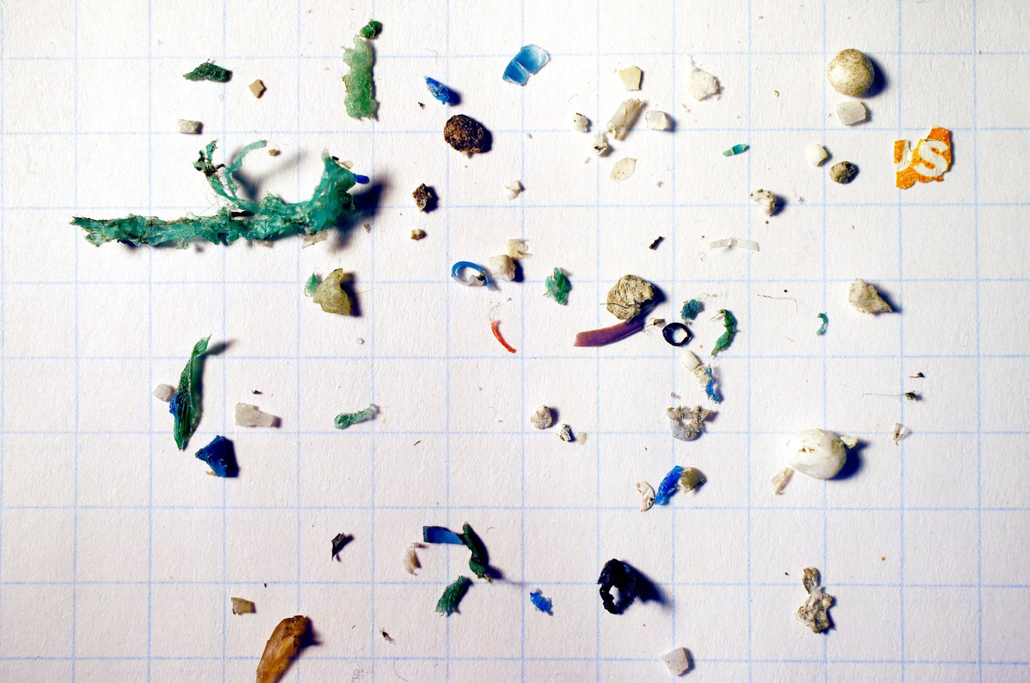 Microplastics smaller than 5mm recovered from the surface Mystic River, Boston, in September 2015. There is a significant incidence of polystyrene. Image by Max Liboiron.