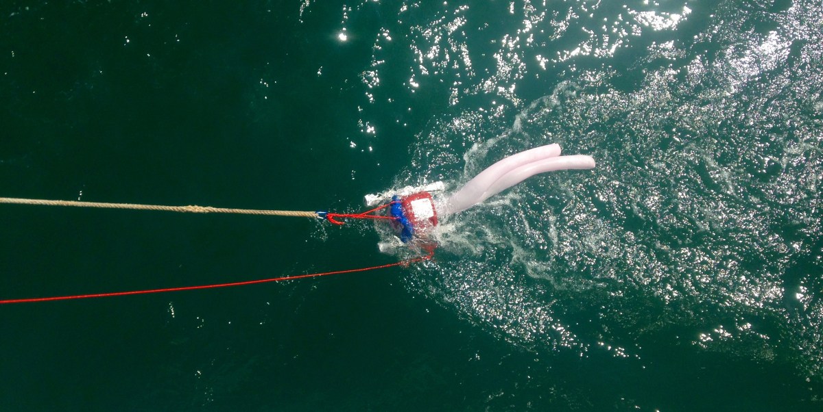 BabyLegs-Liboiron Published 12/20/2015 at 3264 × 1640 in Building DIY citizen science technology to see invisible marine plastics ← Previous Next → BabyLegs being trawled in the Sargasso Sea. This version has two pontoons to keep the technology stable in waves.