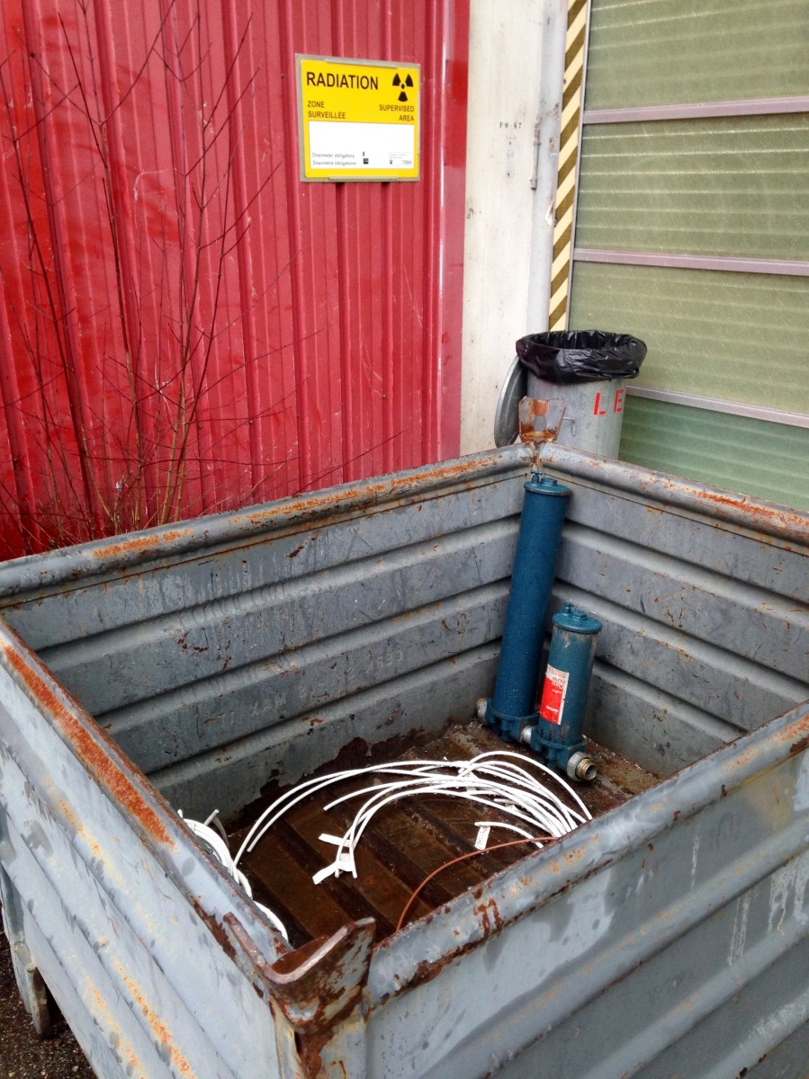 IMG_4405 Published 03/05/2016 at 2448 × 3264 in Dumpster Diving at the World’s Largest Particle Accelerator ← Previous Next → Most of the bins were like this: metal bins with open tops