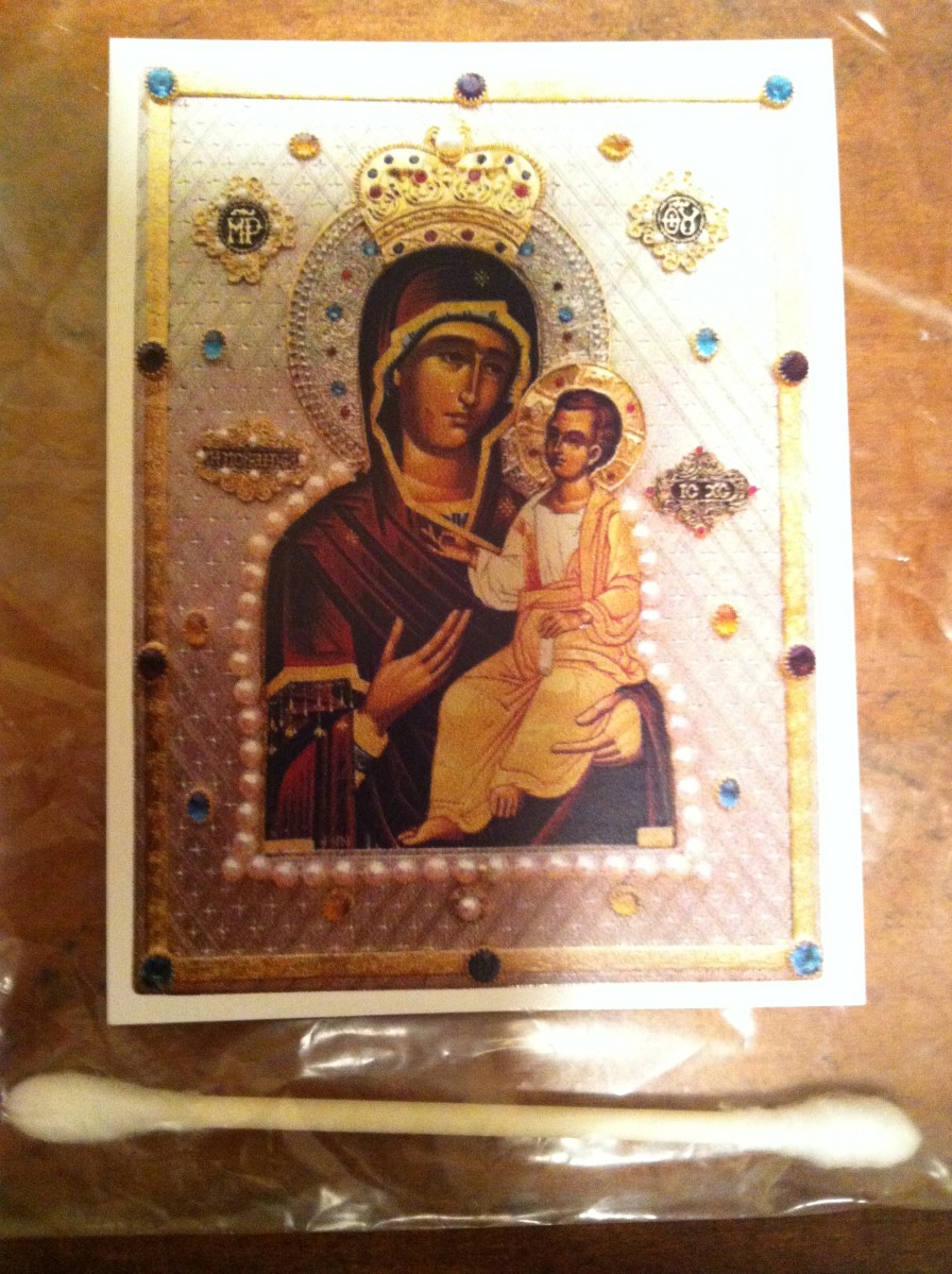 IMG_1818 Published 06/18/2014 at 1936 × 2592 in Discard Studies Compendium ← Previous Next → A cotton swab and icon, found in the home shrine of an interlocutor, were dipped in myrrh that flows from the Iveron icon of the Mother of God. Photograph taken by author and used with permission (2014). Like Loading...