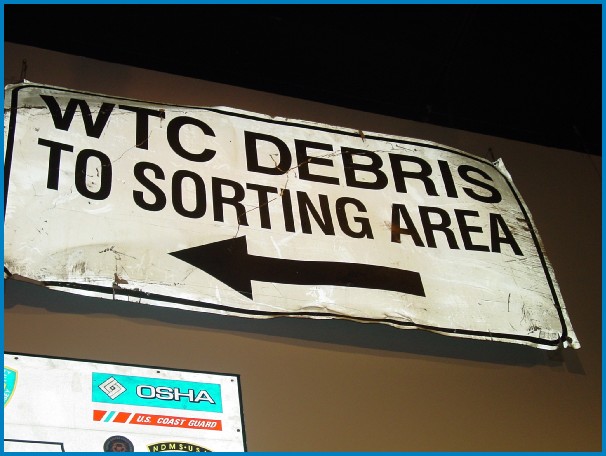 DSNYM-20071011-EB-19 Published 08/30/2013 at 606 × 456 Photograph taken from New York State Museum, Albany, NY. of sign found at ground zero. Photo From NYU-New York Department of Sanitation Museum Project