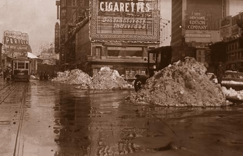 Screen Shot 2013-08-30 at 7.02.32 PM Published 08/30/2013 at 785 × 503 Times Square with snow piles – 1918. From DSNY.